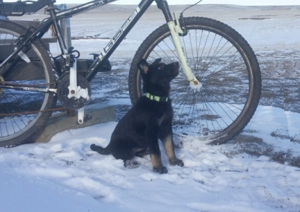 | german shepherd dogs puppy bicycle running springer attachement |