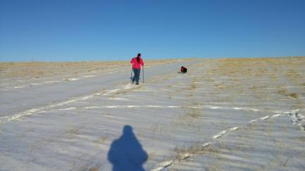 german shepherd dog snowshoeing show shoes shoing shoeing backpack backpacking winter snow sports |