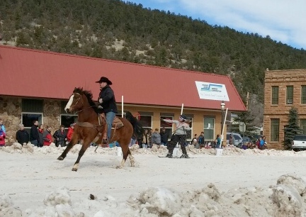horse equine skijoring sundance wy winter fest RINGS RING JOUSTING winterfest festival skijoring competition |