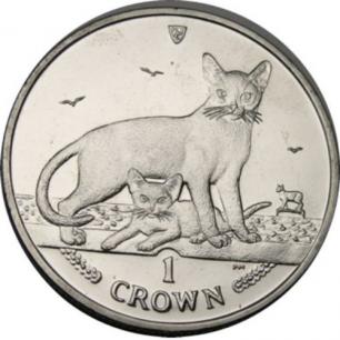crown isle of man cat coin abyssinian cat with kitten kitty kitties coins collection |