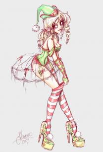 christams elf shelf elves girl female tattoo tatu pinup pin up |