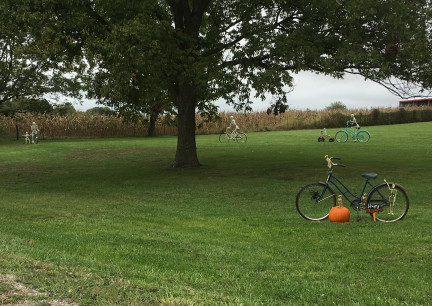 skeletons on bikes bicycles yard display katy trail mkt farmhouse farm house vintage halloween |