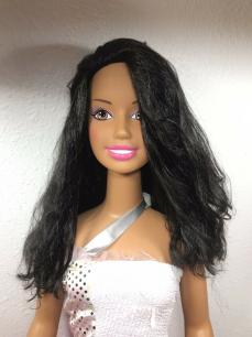 barbie my size 38 hispanic dark skin dkinned diy hair fix clean dress clothes how to sew make for long hair close up black brown |