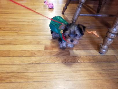 yorkie christmas coat yorkshire terrier outfit puppy pattern made from stocking bells bell |
