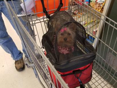 yorshire terrier yorkie shopping shop cart carrier puppy dog tiny trick support service |