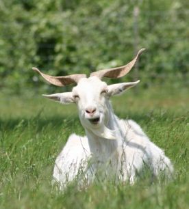 Teasel, Spanish goat extraordinaire, laughs as she tells sheep jokes. |