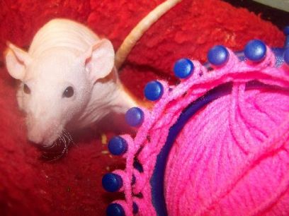 Peaches always loves to help knit!
