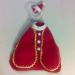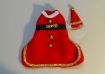 This is a cute little Santa Rat Outfit. It is made with red polar fleece with White polar fleece trim and white pom poms and a ringing bell on the Hat. It has a Black Belt with a "gold buckle" and a Matching Hat.