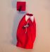 This is a cute little Santa Rat Outfit. It is made with red polar fleece with White polar fleece trim and a white pom pom on the Hat. It has a Black Belt with a Matching Hat.