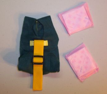 The Goose Diaper Holder I have designed is made of polar fleece. Polar Fleece is light weight, soft, has a bit of give/stretch to it and can be washed in the washing machine or by hand and hung to dry. Polar Fleece was created for sportsmen. You can wash out polar fleece, ring it out very well, and put it back on, even damp it will dry pretty quickly. When polar fleece first came out I was backpacking with and training and racing sled dogs....wonderful stuff. Before it, fabrics used would hold the water or wetness that sportsmen would encounter. Polar Fleece is non absorbent and perfect for Goose Diaper Holders.
