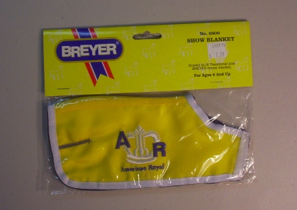 This one is Yellow with white trim and Blue and White machine embroidery "American Royal" On one side and "CHAMPION" on the other side. The size is for a Traditional Size Model.