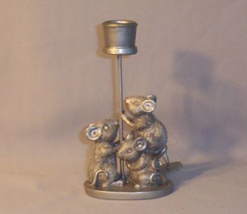 Silver toned Candle Stick Holder that is approx. 5 1/2" tall and about 3" wide. You can see from the photo how cute this holder is. It also has a cheese ring that goes over the candle.