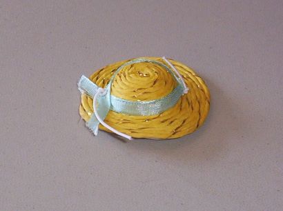 This is cute and even cuter with a rat head under it. It is a rat sized YELLOW Lady Rat Bonnet. It stays on the ratties head with elastic. The elastic is left long when it arrives to you so that you can cut it or tuck it to fit your own rattie.
