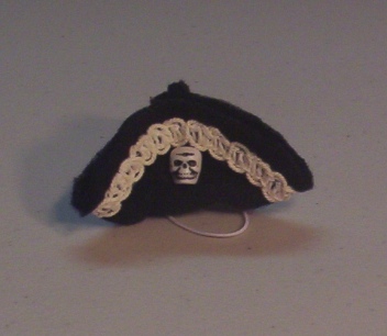 This DELUXE HAT is made in the trifold manner as my other PiRATe hats. This one has Fancy Trim on the the brim with a cute little skull bead sewn on the front.