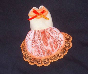 The waist measurement on this Dress is approx 7 3/4", it does have a bit of stretch in it, and the outfit is approx 6 1/2" from neck to tail.