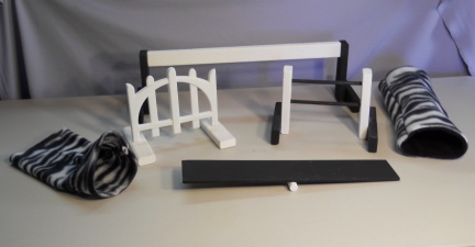 It also has a FENCE JUMP. The fence jump is part plastic and this will help keep shipping costs down. The jump is approx. 7 1/2" wide and 6" high.