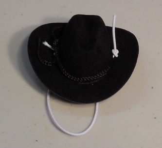 This is cute and even cuter with a Guinea Pig head under it. It is a Cavy sized cowboy hat. It stays on your pet's head with elastic. The elastic is left long when it arrives to you so that you can cut it or tuck it to fit your own Guinea Pig. If you have a dark colored Guinea Pig, use a permanent marker to color the elastic. Just let it dry well before putting the hat on your pet.