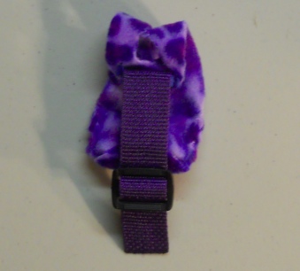 The Diaper Holder is held on, or holds together, with a small high impact plastic slide. Once set to size it will stay put. The slide is well padded by the 1" poly webbing and polar fleece. It makes this Duck Diaper Holder very comfortable and secure for the gosling wearing it.