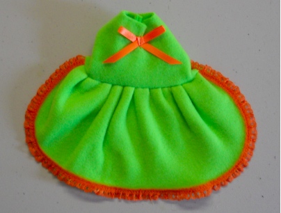 These little dresses are made in a variety of ways. This one is BRIGHT LIME AND NEON ORANGE! WOW! I wish the photos showed the outfits better then they do.