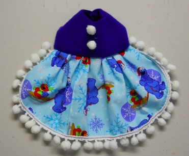 These little dresses are made in a variety of ways. This one is a Cute Sesame Street Print Dress with cute little Pom Poms! I wish the photos showed the outfits better then they do.