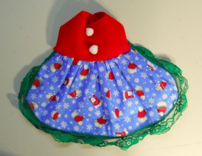 These little dresses are made in a variety of ways. This one is a Cute Polar Bears Print Dress with cute little White Pom Poms. I wish the photos showed the outfits better then they do.