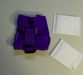 The Goose Diaper Holder I have designed is made of polar fleece. Polar Fleece is light weight, soft, has a bit of give/stretch to it and can be washed in the washing machine or by hand and hung to dry. Polar Fleece was created for sportsmen. You can wash out polar fleece, ring it out very well, and put it back on, even damp it will dry pretty quickly. When polar fleece first came out I was backpacking with and training and racing sled dogs....wonderful stuff. Before it, fabrics used would hold the water or wetness that sportsmen would encounter. Polar Fleece is non absorbent and perfect for Goose Diaper Holders.