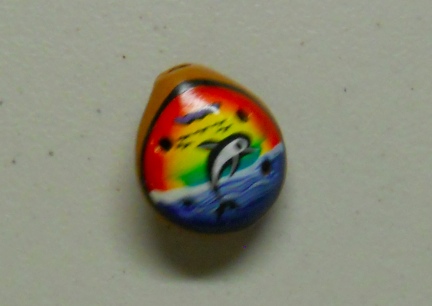 They come in different nicely painted prints and are made from a cotta. They measure about 1 3/4" long and 1 1/2" wide. A fun little whistle with a tiny hole for hanging from a string or chain.