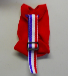 The Diaper Holder is held on, or holds together, with a small high impact plastic slide. Once set to size it will stay put. The slide is well padded by the 1" poly webbing and polar fleece. It makes this Goose Diaper Holder very comfortable and secure for the gosling wearing it.