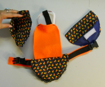 This Duck Diaper Holder Harness is made with A Cute Candy Corn Spider Pring with matching two removable diaper inserts , backed with a waterproof fabric and it is oh so cute. This Duck Diaper Holder can be lined with a sanitary napkin, a human baby diaper, a folded newspaper page or other folded papers such as paper towels or other papers to be recycled.