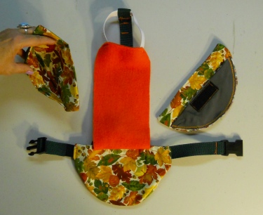 This Duck Diaper Holder Harness is made with Bright Fall Print Fabric with matching two removable diaper inserts , backed with a waterproof fabric and it is oh so cute. This Duck Diaper Holder can be lined with a sanitary napkin, a human baby diaper, a folded newspaper page or other folded papers such as paper towels or other papers to be recycled.