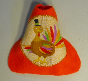 These little coats are made in a variety of ways. This one is a Cute Little Cartoony Turkey Print fabric over ORANGE Polar Fleece.