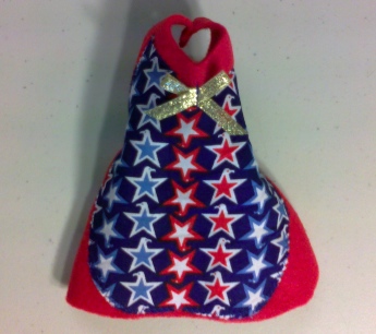 The waist measurement on the Dress is approx 8", it does have a bit of stretch in it, and the outfit is approx 5" from neck to tail.