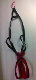 This Recreational Sled Dog Harness is BLACK poly webbing with a RED polar fleece. It will fit most dogs between 116 and 156 pounds.