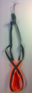 This Recreational Sled Dog Harness is BLACK poly webbing with a ORANGE polar fleece. It will fit most dogs between 59 and 86 pounds.