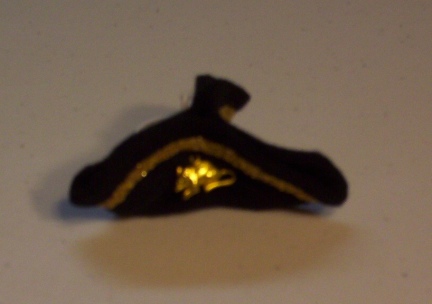 This DELUXE HAT is made in the trifold manner as my other PiRATe hats. This one has GOLD trim on the the brim with a cute little gold toned RATTIE CHARM sewn on the front.