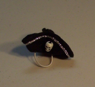 This DELUXE HAT is made in the trifold manner as my other PiRATe hats. This one is black and it has SILVER trim on the the brim with a cute little RATTIE CHARM sewn on the front. (may vary a little bit, each one is hand crafted)