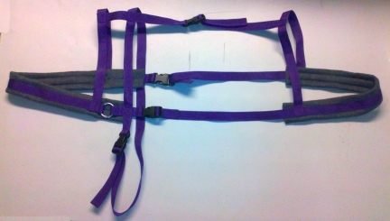 Goat Harness Facts: Webbing: PURPLE Polly Webbing Padding: GRAY Polar Fleece Rings: Heavy Weight Welded Metal Buckles: Quick Release Heavy Weight High Impact Plastic