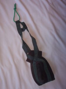 This Recreational Sled Dog Harness is FOREST GREEN poly webbing with a YELLOW polar fleece. It will fit most dogs between 48 and 71 pounds.