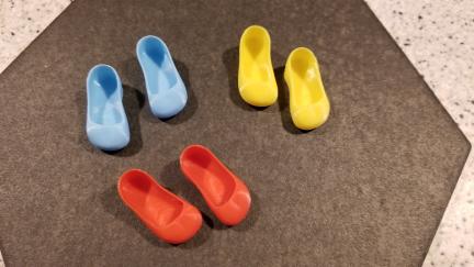 Deron Started Designing and 3D Printed these types of Shoe Soles for my Dolls that I might have bought used and they came without Shoes, or that I just wanted more shoes for. I LOVE THESE. You can add ribbons or elastic or fabrics to make shoes fancier for your own Dolls. I use Hot Glue with I make mine, but Super Glue or Craft Glue could also be used.