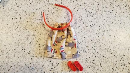 With this lot you will receive what you see in the photo. The cute little Skirt, the a Matching Pair of Shoes (that click on from the little toe over and STAY on the foot!) as well as the matching Headband.