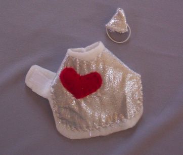 These little coats are made in a variety of ways. This one is a Cute little Silver Metalic fabric made into a Tin Man outfit from Oz. It has a matching hat that stays on with adjustable eleastic.