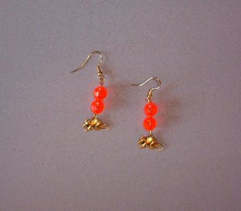 These little gold toned pieced earrings are just the cutest, real life looking earrings. There are two translucent orange beads on each earring. They were designed made by me with gold toned fish hook type pieced earrings.