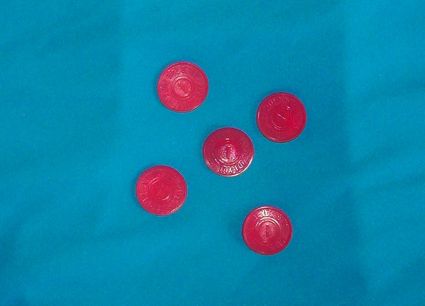 This is a set of Five Red Cent Missouri Sales Tax Tokens. I can remember my parents and grandparents saying (as if) "I do not have one red cent." People of the WWII age and their children know about "Red Cents" if they have seen them or not.