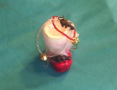 This one of a kind Santa Boot and Rats Ornament is also adorned with "silver", as well as Shiny Red beads as will as little ringing bells.