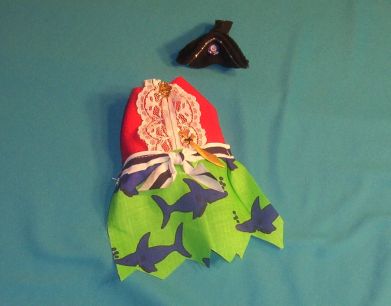These little costume is adorable with a little red fleece top complete with lace front,a PiRATe Captain's Hat with Skull and a tiny little Sword at the waist.