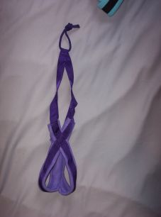 This Recreational Sled Dog Harness is PURPLE poly webbing with a LIGHT PURPLE good grade polar fleece. It will fit most dogs between 18 and 26 pounds.