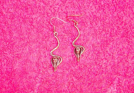 COBRAS! Here is a cute little pair of Cobra silver toned earrings. The charms are approx 1 3/4" long from the bottom of the fish hook type earring holder.