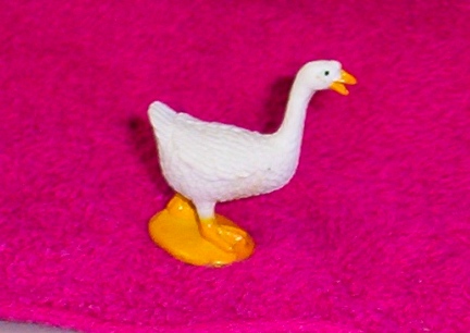 This is just the cutest little walking goose statue. It is approx 2" x 2" and made of hard rubber. A must for all goose collectors.